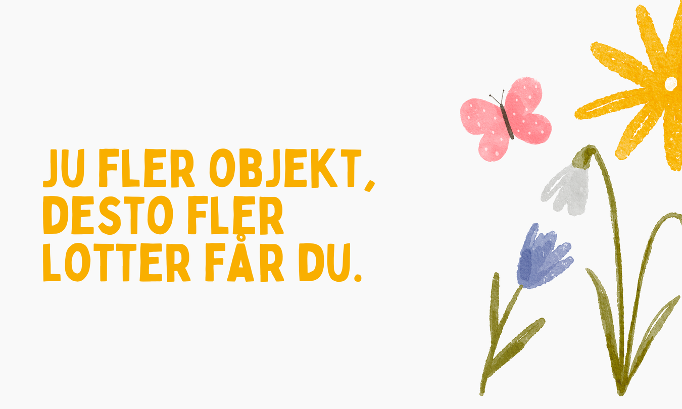 Du ökar dina chanser att vinna genom att publicera fler objekt under tävlingsperioden. Varje godkänt och publicerat objekt ger en ny lott, vilket innebär att fler publicerade objekt ger dig fler chanser i utlottningen av presentkortet.